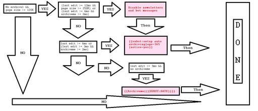 | Keywords: Archival flowchart for User talk.png en Prototype flow chart for archival of User talk pages that are very large and causing some editors to be unable to post to them or read them Self Technical 13 2015-01-06 PD self Cc-zero Uncategorized 2015 December 12 |