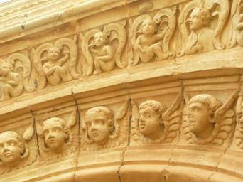 Keywords: archivolts angels church plateresque arc angel sharks cherubs heads bodies position stone garrovilla sixteenth century relief