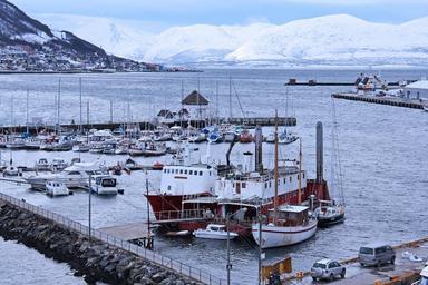 Keywords: arctic beautiful sky habour mountain cloud morning calm cold winter white freezing visit tromso harbour port tromso the arctic circle norway scandinavia europe travel scenery nordic scenic fjord norwegian outdoor