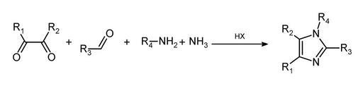 | Keywords: Arduengo imidazoles.png Synthesis of substituted en imidazoles Reference US patent reference 6 177 575 2001 01 23 en Anthony J Arduengo III Process for Manufacture of Imidazoles en wikipedia 2006-12-26 Rifleman 82 wikipedia en chemical </nowiki> Debus-Radziszewski imidazole synthesis Carbonyl compounds Primary amines |