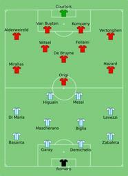 | Keywords: ARG-BEL 2014-07-05.svg 2014 FIFA World Cup quarter-final match between Argentina and Belgium quarts de finale de la Coupe du monde de football 2014 entre l'Argentine et la Belgique 2014-07-05 18 53 30 own <br />Line-ups http //resources fifa com/mm/document/tournament/competition/02/39/99/31/eng_60_0705_arg-bel_tacticalstartlist pdf Davykamanzi cc-zero Uploaded with UploadWizard FIFA World Cup 2014 line-ups Argentina national football team line-ups Belgium national football team line-ups Argentina at the 2014 FIFA World Cup Belgium at the 2014 FIFA World Cup |