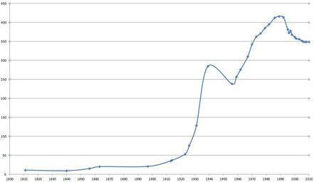 | Keywords: Arh.people.png Динамика численности населения А хангельска с 1811 по 2010 годы источник данных http //www mojgorod ru/arhangel_obl/arhangeljsk/index html энциклопедия « ой Го од» Ось X - год ось Y - население в тысячах человек Own 2011 Sasha Krotov Arkhangelsk Temporal population graphs of Russia |