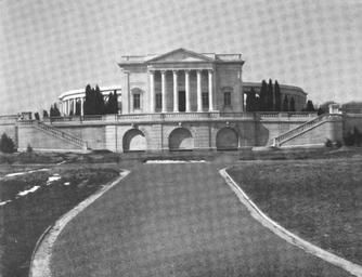 | Keywords: Arlington Memorial Amphitheater - completed - 1921.jpg en Photograph of the east front of the Memorial Amphitheater at Arlington National Cemetery in Arlington County Virginia in the United States in 1921 shortly after its completion The retaining wall with false niches would be replaced in 1929-1930 by monumental stairs leading down to the formal gardens in the foreground The road running due east to the retaining wall would also be removed at that time in favor of a long quadrangle of grass framed by beech hedges and sidewalks These changes would be made as part of the alterations made for the installation of the final Tomb of the Unknowns in 1931 http //babel hathitrust org/cgi/pt id mdp 39015020241660;view 1up;seq 14 Arlington Memorial Amphitheater Commission Final Report of the Arlington Memorial Amphitheater Commission Washington D C Government Printing Office 1923 p 3 1921 Arlington Memorial Amphitheater PD-USGov |