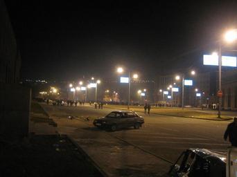 | Keywords: Armenian Presidential Elections 2008 Protest Day 11 - 1233AM Miasnikyan Square - park general view.jpg The 11th day of Armenian presidential election protests At 7 30 am the peaceful camp-in protest at Liberty Square in Yerevan was violently ended by Armenian special forces which used truncheons and electric shock devices to disperse the crowd of around 1 000 At 12 30 pm a new crowd marches to the French Embassy in a spontaneous demonstration barricade themselves using abandoned police buses and grow in number to around 150 000 By 12 am the bulk of the approximately 2 000 demonstrators left in the area are at Miasnikyan Square in front of the French Embassy while only tens of people are at the site of the looting of a grocery store near the intersection of Mashdots Ave and G Lusavorich Street a quarter mile northwest of the location of this camera The nearest police are stationed at Shahuman Square 1/3 of a kilometer northeast of the location of this camera Police allow looting to continue in the area of Mashdots Ave and G Lusavorich for several hours as government TV crews film tens of people looting the grocery store <br/><br/>In this picture 12 33 AM a general view of Miasnikyan Square looking east from the Museum of Yerevan History at left Own 2008-03-02 Serouj 40 10 27 01 N 44 30 12 76 E Demonstrations and protests relating to the Armenian presidential elections 2008 |