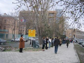 | Keywords: Armenian Presidential Elections 2008 Protest Mar 21 - French Embassy - women.jpg The first day after the 20-day state of emergency had been lifted after the Armenian presidential election protests Between 5pm and 7pm about 1 000 citizens -- mostly women -- participated in a peaceful and silent protest and vigil to remember those who died on March 1 condemn the government's actions and to recognize the more than 100 political prisoners <br/><br/>In this picture 6 12 pm a group of women hold a silent protest in front of the French embassy holding pictures of political prisoners -- some of the over 100 opposition leaders arrested since March 1 Own 2008-03-21 Serouj 40 10 28 31 N 44 30 23 72 E Demonstrations and protests relating to the Armenian presidential elections 2008 |