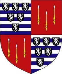 | Keywords: Arms of Baron Amherst of Hackney.svg en Arms of Baron Amherst of Hackney Quarterly 1st and 4th barry of ten argent and azure six escutcheons three two and one sable each charged with a lion rampant argent a mullet for difference for Cecil ; 2nd and 3rd gules three tilting spears two and one or headed argent for Amherst own Oxenhillshaw 2010-08-11 Coats of arms of peers in the British Isles Cecil arms | ||||