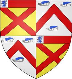 | Keywords: Arms of the Marquess of Ailesbury.svg en Arms of the Marquess of Ailesbury Quarterly 1st and 4th or a saltire and chief gules on a canton argent a lion rampant azure for Bruce ; 2nd and 3rd argent a chevron gules between three chapeaux to the sinister azure for Brudenell own Oxenhillshaw 2009-12-05 other fields Coats of arms of peers in the British Isles Lions rampant azure Or a saltire gules Gules and Or in heraldry Coats of arms of the House of Bruce Hats in heraldry 1 chevron gules in heraldry Brudenell arms |