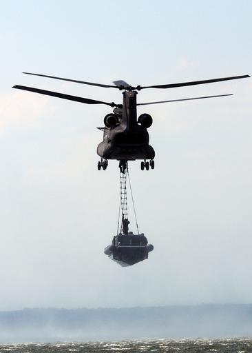 | Keywords: Army Helicopter Lifts Naval Special Warfare RHIB DVIDS106178.jpg en An Army CH-47 helicopter attached to the 159th Aviation Regiment lifts a Naval Special Warfare 11-meter rigid-hull inflatable boat during a maritime external air transporation system training exercise The special warfare combatant-craft crewmen aboard the 11-meter RHIB climb a ladder to the helicopter which can transport the craft over land or water further expanding the operational reach of the special boat operators 2008-07-16 Ensign Robyn Gerstenslager https //www dvidshub net/image/106178 080716-N-+++++-040 2008-07-30 03 15 FORT EUSTIS VA US PD-USGov-Military-Navy Special Warfare Combatant-craft Crewmen Fort Eustis Images from DoD uploaded by Fæ |