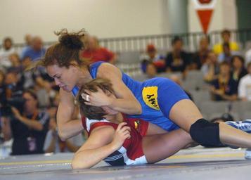 | Keywords: Army-mil-2007-04-19-093607.jpg April 19 2007 All-Army wrestler First Lt Leigh Jaynes top posts a 5 “1 7 “2 victory over Erin Tomeo of Sunkist Kids Wrestling Club in the women's 130-pound freestyle finale of the 2007 U S National Wrestling Championships April 6 at Las Vegas Convention Center First Lt Jaynes qualified for the U S World Team Trials scheduled for June 9 “10 in Las Vegas The United States Army website at http //www army mil/-images/2007/04/19/4084 http //www army mil/-images/2007/04/19/4084 2007-04-19 Tim Hipps PD-USGov-Military-Army PD-USGov-Military PD-USGov Leigh Jaynes Erin Tomeo |