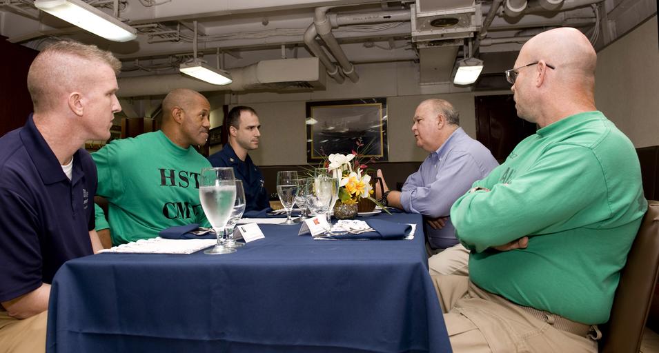| Keywords: Army Under Secretary embarks to help inter-Service cooperation on USS Truman 120903-N-MY642-007.jpg en Under Secretary of the U S Army Joseph W Westphal in the Chiefs' Mess of the aircraft carrier USS Harry S Truman CVN 75 speaking with Command Master Chief R D Kemp Sr command master chief of the USS Truman as Westphal participates in the U S Navy's Sea Embark outreach program Sept 3 2012 on the Atlantic Ocean Westphal is participating in the Navy's long-standing outreach program to promote inter-Service cooperation in support of Joint Vision 2020 and gain an appreciation for Naval capabilities at sea The Navy's Sea Embark outreach program enables government and civilian senior leaders the ability to experience first-hand how the Navy contributes to the National Defense strategy and to the stability of the global community U S Navy photo by Mass Communication Specialist 3rd Class Donald R White Jr /Released <br>Unit Under Secretary of the Army 2012-09-03 Seaman Donald R White https //www dvidshub net/image/657205/army-under-secretary-embarks-help-inter-service-cooperation-uss-truman 120903-N-MY642-007 2012-09-04 02 26 USS HARRY S TRUMAN CVN 75 US PD-USGov-Military-Navy Joseph Westphal USS Harry S Truman CVN-75 Images from DoD uploaded by Fæ |