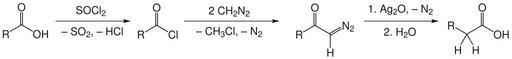 | Keywords: Arndt-Eistert-Homologisierung allgemein.svg en General mechanism of the Arndt-Eistert-Homologation de à bersicht über die Arndt-Eistert-Homologisierung selbst erstellt mit ChemBioOffice 11 LinuxCLP 2011-04-28 Cc-zero Arndt “Eistert reaction |