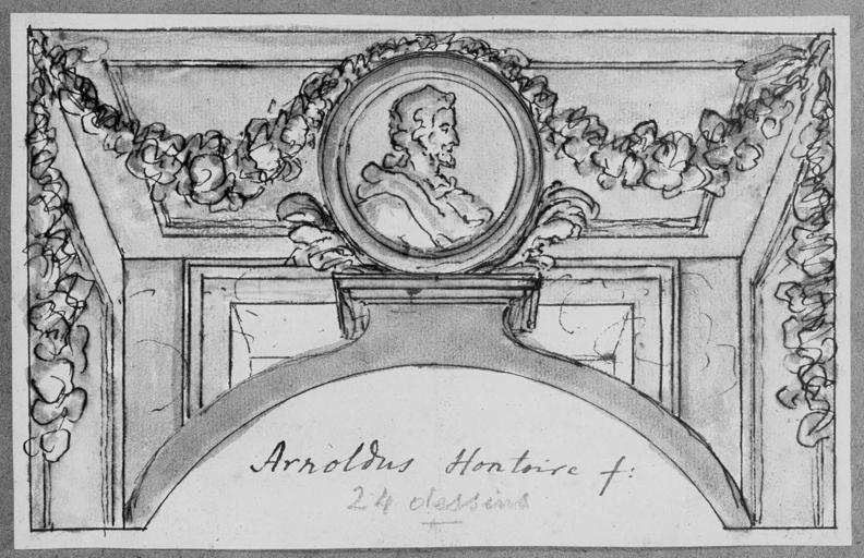 | Keywords: Arnold de Hontoire, design for a wall decoration with portrait medaillon.jpg en Arnold de Hontoire design for a wall decoration with portrait medaillon Drawing in the collection of the Cabinet des Estampes et des Dessins now part of the Grand Curtius Museum in Liège Belgium 2014-10-11 23 32 18 http //balat kikirpa be/results php startfrom 3 Arnold de Hontoire 1630-1709 other versions Custom license marker 2014 10 11 PD-100 Arnold de Hontoire Cabinet des Estampes et des Dessins de la Ville de Liège 18th-century drawings 18th-century architectural elements Uploaded with UploadWizard |