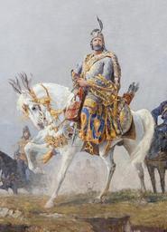 | Keywords: Árpád on Feszty's Panorama.jpg Artwork Creator Árpád Feszty and ca 20 assistants Árpád on a white horse between 1892 1894 Oil canvas Institution Ópusztaszer National Heritage Park Rotunda Restitched from photos made by user TiborK at http //photosynth net/view aspx cid 8f6b52a4-0f19-4a4a-80db-4457e49a8a66 other versions See Category Arrival of the Hungarians by Árpád Feszty PD-old-100 1914 Hungary Árpád Arrival of the Hungarians by Árpád Feszty 19th-century oil equestrian portraits of men 1892c 19th-century self-portrait paintings of men 1892c White horses in art Leopard clothing in art |