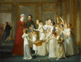 | Keywords: Arrivée de l'impératrice Marie-Louise à Compiègne.jpg fr Arrivée de l'impératrice Marie-Louise à Compiègne le 28 mars 1810 Marie-Louise recevant les compliments et les fleurs d'un groupe de jeunes filles dans la Galerie du chartrain à Compiègne à 9h du soir 1quarter Other date century 19 Oil on canvas cm 150 112 Institution Versailles object history 000PE005081 accession number MV 1752 ; INV 2371 ; AC 1150 http //www photo rmn fr/archive/08-533717-2C6NU0TEAH0T html other fields other versions 100px PD-old-100 Portraits of Marie-Louise of Austria Duchess of Parma Pauline Auzou Images from Réunion des musées nationaux |
