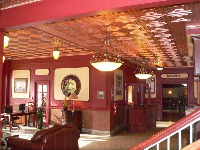| Keywords: Arrow Hotel interior lobby 2.1.JPG Arrow Hotel in Broken Bow Nebraska The building was constructed in Prairie School style in 1928 and is listed in the National Register of Historic Places It continues to function as a hotel and restaurant The camera is facing southeast; the main east entrance is just out of the frame to the left A flash was used in the photo; a similar photo taken with only ambient light has also been uploaded own Ammodramus 2010-06-03 Pictures by Ammodramus Taken with Panasonic Lumix DMC-FZ20 Arrow Hotel |