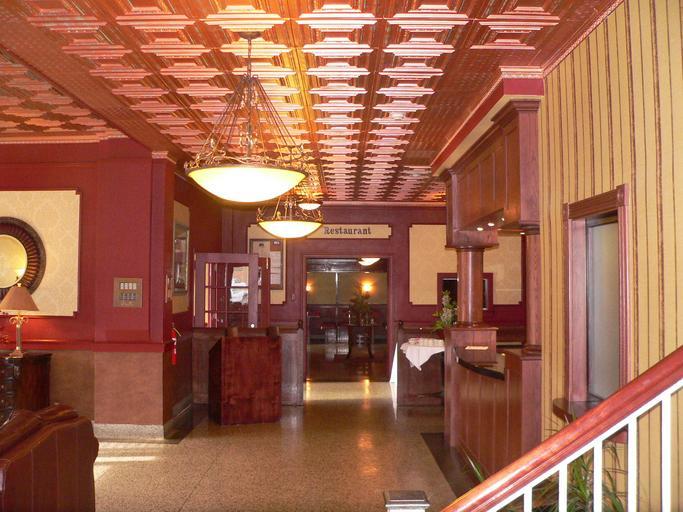 | Keywords: Arrow Hotel interior lobby 3.1.JPG Arrow Hotel in Broken Bow Nebraska The building was constructed in Prairie School style in 1928 and is listed in the National Register of Historic Places It continues to function as a hotel and restaurant The camera is facing south; the main east entrance is out of the frame to the left; the reception desk is at right A flash was used in the photo; a similar photo taken with only ambient light has also been uploaded own Ammodramus 2010-06-03 Pictures by Ammodramus Taken with Panasonic Lumix DMC-FZ20 Arrow Hotel Reception desks |