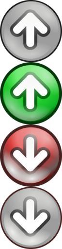 Keywords: arrows directions set four group up down pointing pointers green red grey buttons circles round shapes symbols signs white