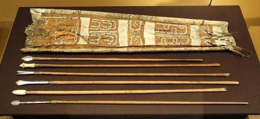 | Keywords: Arrows and quiver, probably Tjukoktka, Ryssland, c. 1880 AD - Etnografiska museet - Stockholm, Sweden - DSC01254.JPG en Exhibit in the Etnografiska museet Stockholm Sweden This work is old enough so that it is in the public domain Photography was permitted in the museum without restriction 2014-09-16 own Daderot other versions cc-zero Uploaded with UploadWizard Chukchi collection in the Etnografiska museet | ||||