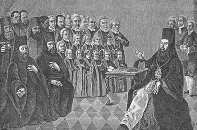 | Keywords: Arseny Vereshchagin 03.jpg Arseny Vereshchagin А хиепископ остовский А сений Ве ещагин и его свита Со ста иной ка тины находившейся в Я ославском а хие ейском доме адписи на ка тине «Эконом Пок игумен По фи ий; казначей ие ом Игнатий; житен ие омон Ав амий; чашник монах Филимон; диакон иколай Се геев; диакон Пет Игнатьев; хо онат диакон Симеон Его ов бас 1-й; ип Яков Зо евский тен 2-й; бас 2-й Ив Козьмодемьяновский; тен 1-й ихаил Вознесенский; тен 1-й Василий икольский; тен 2-й Г иго ий Т опинский; бас 3-й Павел Тихановский; бас 3-й иколай Благовещенский; понома ь Илья Дыбинский тен 2-й; дишк 1-й Василий Лазовский; дишк Ив Воск есенский; альт 1-й Димит ий Ие усалимский; альт 2-й Г иго ий Отцовский; дишк 1-й Яков Благовещенский; дишк 1-й и он О леянский; дишк 2-й Ив Во онинский; альт 1-й Пет Ильинский; альт 1-й Александ Алексеевский; альт 1-й иколай Затейкин; пл Димит ий Васильевич Ве ещагин; к Василий Федо ыч о ошкин; Пет Алекс Розов; фил уч атвей Козьмич итский; жив иколай Лужников » <poem>«И неба и земли Владыко нам внемли Се п едседящий с нами Отец между сынами Закон твой отк овен Лиет нам из устен Ты с высоты святыя Ему лей дни златыя И всем даждь благодать Тебя нам познавать В твоем священном чтении Что чтит и чтет А сений Сей б атства есть по т ет Единый здесь п едмет Божественное слово Учение Х истово Здесь славится Тво ец Отцев и чад Отец; Его п иемлют пласты ь Пасомые и пасты ь Владыко всех владык Тебе поет сей лик Даждь нам тебя уз ети олю и аз и дети »</poem> Титов А А http //memoirs ru/texts/Titov_AA_IV86_23_2 htm Последний Ростовский а хиепископ А сений IV Ве ещагин // Исто ический вестник 1886 Т 23 2 С 395 создан около 1795 эстамп - 1886 author PD-Art Arseny Vereshchagin Istorichesky Vestnik |