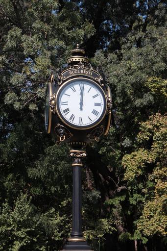 Keywords: art bucharest clock four gold herastrau leaf sided street architecture objects