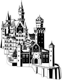 Keywords: art deco bavaria black and white building castle germany ludwig ii schloss stylized