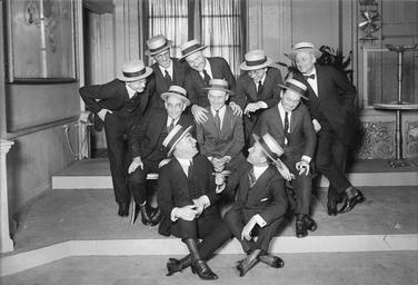| Keywords: Art Hickman Orch without instruments.jpg Art Hickman His Orchestra posed without their instruments Bain News Service photo probably taken on the Orchestra's trip to New York City in 1919 or 1920 Art Hickman seated bottom left Per http //www gracyk com/hickman shtml personnel at this time was Steve Douglas violin Walt Roesner trumpet Fred Kaufmann trombone Clyde Doerr alto and baritone saxes oboe and clarinet Bert Ralton soprano and tenor saxes and clarinet Frank Ellis piano Vic King tenor banjo Ben Black plectrum banjo Bela Spiller string bass and Art Hickman drums piano and slide whistle Bain News Service photo labeled only Hickman Via Library of Congress website http //www loc gov/pictures/item/ggb2006006093/; high res TIF border cropped contrast adjusted and converted to jpg before uploading to Wikimedia Commons Not dated probably 1919 or 1920 Uncredited photographer for Bain News Service PD-Bain Art Hickman Musical groups from California Fans with four blades |