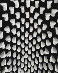 Keywords: art installation shoes hanging white design modern decoration indoor interior exhibition collection perspective contemporary black and white gallery