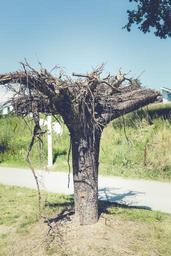 Keywords: art nature forest garden creativity tree statue wood root old root log plant tree root gnarled old object butt rotated conversely sculpture