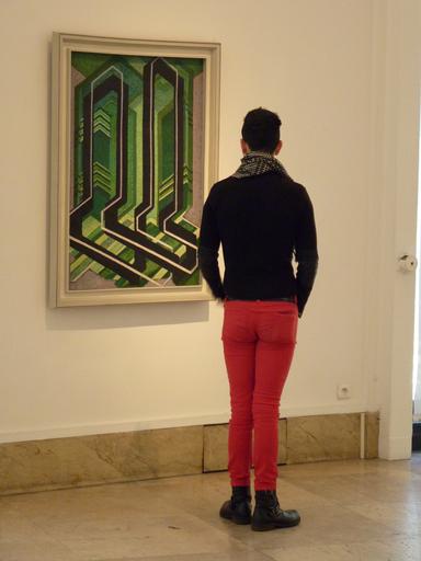 Keywords: art observer person kustwerk art connoisseur connoisseur museum museum visitors culture exhibition painting visitors man the modern human modern color viewing survey fashion pants rest