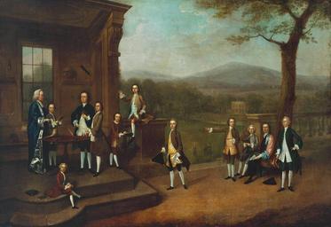 | Keywords: Arthur Devis 14.jpg Artwork Creator Arthur Devis This informal group portrait or ˜conversation piece ™ shows Dr John Clayton founder of Salford Grammar School with a fellow teacher and ten of their pupils at the end of their school term Dr Clayton stands as if on a stage set at the entrance to his school In his hand he holds a scroll containing a Latin quotation from the classical poet Horace which can be translated as ˜Now drink in these Words with a pure heart boy ™ While some of the boys recite verses especially written for the end of term others are already engaged in sports and various high jinks ca 1738 oil canvas cm 120 7 174 6 Institution Tate Britain Not on display object history credit line Purchased 1980 accession number T03103 http //www tate org uk/servlet/ViewWork cgroupid 999999961 workid 3837 searchid 12512 Tate Britain PD-old-100 Arthur Devis Paintings in Tate Britain 1730s paintings Files uploaded by Shakko from various sources |