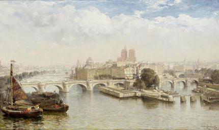 | Keywords: Arthur Joseph Meadows Paris 1897.jpg 1897 oil on canvas 30 5 x 51cm 12 x 20 1/16in Private collection http //www bonhams com/auctions/18740/lot/79/ Bonhams and http //www artrenewal org/pages/artwork php artworkid 39808 Art Renewal Center object history exhibition history credit line place of creation signed and dated 'ArthurMeadows/1897' lower right signed and inscribed with title on reverse http //www bonhams com/ Bonhams accession number PD-100 Images from Bonhams Cityscape paintings of Paris Île de la Cité in art Historical images of Pont Neuf 1897 oil on canvas paintings in France 1897 in Paris Paintings of the Seine in Paris Paintings of bridges in Paris Square du Vert-Galant in art Paintings of Notre-Dame de Paris Remote views of Notre-Dame de Paris Arthur Joseph Meadows Notre-Dame de Paris in the 1890s |