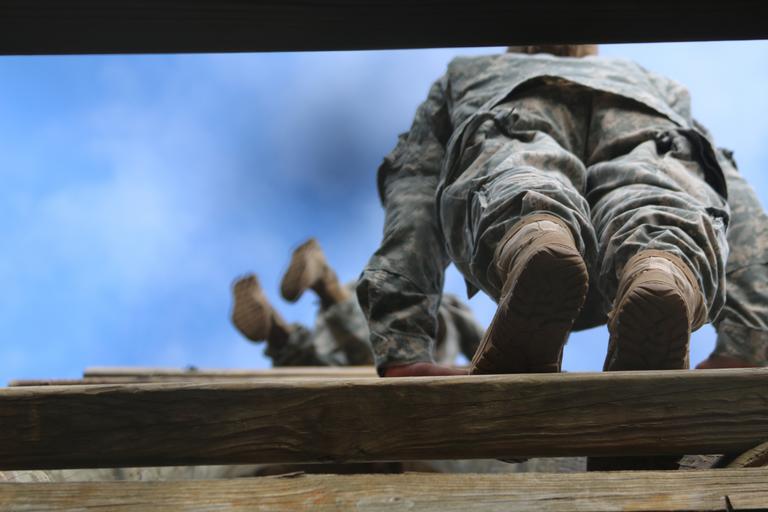 Keywords: FORT BRAGG, N.C.--Lieutenants from the 18th Field Artillery Brigade climb the Tough One at the Deglopper Air Assault School during the Lieutenants Carloss, Randall, and Eddy competition, Sept. 27. The leader development competition tested the leadership, teamwork, mental and physical toughness of 18th Field Artillery Brigade lieutenants. (U.S. Army photo by Capt. Devon Thomas, 18th Field Artillery Brigade/Released toughone airassault school armyprofession firescenterofexcellence fortsill fortbragg usarmy readiness northcarolina unitedstates us