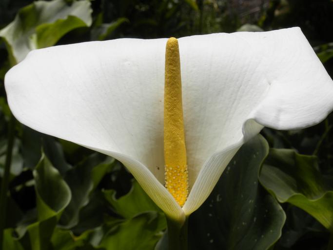 Keywords: arum flower white yellow green foliage family araceae calla rhizome plant herbaceous perennial and large sheets chalice nature culture botany exotic macro plant flora wallpaper