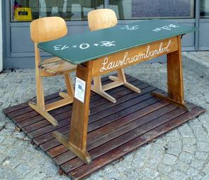 | Keywords: Aschau im Chiemgau, Lausbuambankerl, 1.jpeg A Lausbuambankal oisa Sitzbank voa da Preysing-Schui z' Aschau im Cheamgau de Sitzbank in Form einer Schulbank vor der Grundschule in Aschau im Chiemgau eo Ripoza benko en la formo de lerneja tablo antaĆ lernejo en Aschau im Chiemgau DE self-photographed Renardo la vulpo 2016-04-05 Aschau im Chiemgau Street furniture in Bavaria Cc-zero | ||||