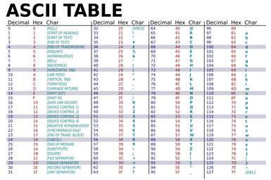 | Keywords: ASCII-Table-wide.svg ASCII Table of 7 bit ASCII characters aligned in 4 columns with same height and made to fit on an A3/A4 page ASCII-Table svg 2010-05-21 13 58 UTC ASCII-Table svg ZZT32 derivative work LanoxxthShaddow Columns have same height now removed octal and binary columns LanoxxthShaddow ASCII-Table svg ASCII |