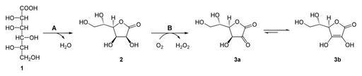 Keywords: Ascorbic acid biosynthesis part II.svg acorbic acid from L-Gulonic acid Ascorbinsäure ausgehend von L-Gulonsäure Own Yikrazuul 2009-03-15 Ascorbic acid