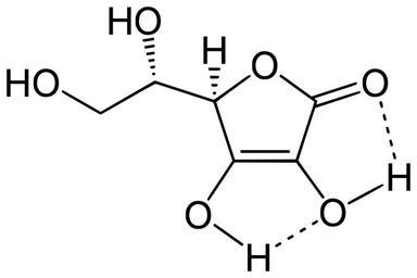 Keywords: Ascorbic acid H-bonding.svg en Hydrogen bonds within ascorbic acid de Wasserstoffbrückenbindung bei der Ascorbinsäure Own Yikrazuul 2009-02-07 Ascorbic acid Hydrogen bonding