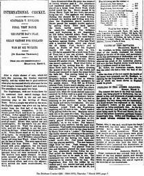 | Keywords: Ashes fifth day of deciding match 1895.jpg from the http //www nla gov au/ndp/ National Library Australian newspapers digitisation program which are pre-1955 so no copyright The service includes newspapers published in each state and territory from the 1800s to the mid-1950s when copyright applies http //www nla gov au/ndp/ National Library Australian newspapers digitisation program Thursday 7 March 1895 The Brisbane Courier PD-Australia National Library of Australia - Australian Newspapers Service Newspaper clippings about cricket Images from Brisbane Courier 1895 texts |