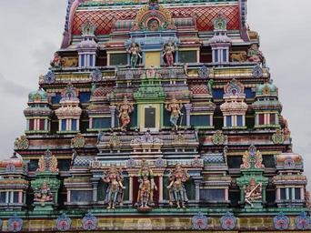 Keywords: asian religion ornament facade figure temple buddhist architecture culture building mark former oriental palace travel tourism saint-andré reunion island
