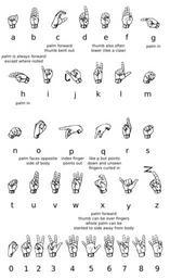 | Keywords: Asl alphabet gallaudet ann.svg Finger-spelling alphabet Vectorised version of Image Asl alphabet gallaudet ann png which is annotated version of Image Asl_alphabet_gallaudet png 2007 SVG User Marnanel based on image by User Dancor~commonswiki based on image by en user Ds13 Image Asl_alphabet_gallaudet png file lists itself as public domain and i am releasing this derived work also into the public domain if that file turns out not to be completely public domain i still release this image with as much freedom to use and modify as i am legally able to Sign language Alphabet charts |