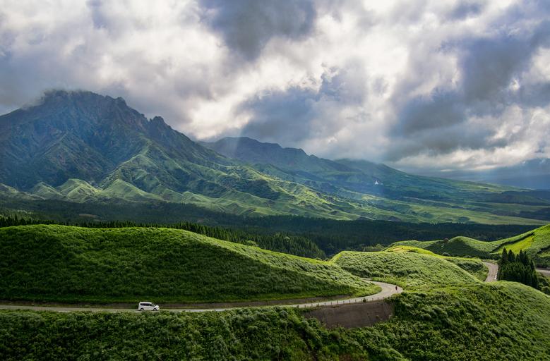 Keywords: aso kumamoto japan caldera natural landscape cloud green