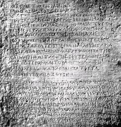 | Keywords: AsokaKandahar.jpg Qəndəharda Aşoka Padşahin iki dildə Yunan və Arami yazılmış yazı 3-cü əsr E ə Qabaqcada Kabil Müzeyidə idi sonra görünməz oldu Bilingual Greek and Aramaic inscriptions by king Ashoka at Kandahar Shar-i-kuna 3rd century BC Preserved at Kabul Museum Today disappeared Two-dimensional inscription Dulingva greka kaj aramea surskriboj de Re o A oka ĉe Kandahar ar-i-kuna 3a jarcento antaŭ la nuna erao Antaŭe de la Muzeo de Kabul poste malaperis Du-dimensia surskribo Inscripción en dos idiomas por el rey Ashoka en Kandahar Shar-i-kuna 3a siglo AEC Antes en el Museo de Kabul hoy desvanecido Inscripción de dos dimensiones Transcription Greek transliteration <div class polytonic > δέκα ἐτῶν ληρη ων βασιλεὺς Πιοδασσης εὐσέβειαν ἔδειξεν τοῖς ν- θρώ οις καὶ ὸ τούτου εὐσεβεστέρους τοὺς νθρώ ους ἐ οίησεν καὶ άντα εὐθηνεῖ κατὰ ᾶσαν γῆν καὶ έχεται βασιλεὺς τῶν ἐμψύχων καὶ οἱ λοι οὶ δὲ νθρω οι καὶ ὅσοι θηρευταὶ ἤ αλιείς βασιλέως έ αυνται θηρεύοντες καὶ εἲ τινες κρατεῖς έ αυνται τῆς κρα- σίας κατὰ δύναμιν καὶ ἐνήκοοι ατρὶ καὶ μητρὶ καὶ τῶν ρεσβυτέρων αρὰ τὰ ρότερον καὶ τοῦ λοι οῦ λῶιον καὶ ἄμεινον κατὰ άντα ταῦτα οιοῦντες διάξουσιν </div> English translation Ten years of reign having been completed King Piodasses Ashoka made known the doctrine of Piety εὐσέβεια Eusebeia to men; and from this moment he has made men more pious and everything thrives throughout the whole world And the king abstains from killing living beings and other men and those who are huntsmen and fishermen of the king have desisted from hunting And if some were intemperate they have ceased from their intemperance as was in their power; and obedient to their father and mother and to the elders in opposition to the past also in the future by so acting on every occasion they will live better and more happily Trans by G P Carratelli http //www afghanan net/afghanistan/mauryans htm see also http //www rivistazetesis it/Kandahar htm here Aramaic in Hebrew alphabet <div dir rtl > שנן 10 פתיתו עביד זי מראן פרידארש מ כא קשיטא מהקשט מן אדין זעיר מרעא כ ה אנשן וכ ה אדושיא הובד ובכ ארקא רא שתי ואף זי זנה כמאכ א מראן מ כא זעיר קט ן זנה מחזה כ ה אנשן אתהחסינן אזי נוניא אחדן א ך אנשן פתיזבת כנ זי פרבסת הוין א ך אתהחסינן מן פרבסתי והופתיסתי אמוהי ו אבוהי ו מזישתיא אנסן איך אסרהי ח קותא ו א איתי דינא כ ה אנשיא חסין זנה הותיר כ ה אנשן ואוסף יהותר </div> PD-Art PD-old-auto 3nd century BC Afghanistan Ashoka Major Rock Edict Kandahar Ancient Greek inscriptions Aramaic language National Museum of Afghanistan History of Kandahar Archaeological multilingual inscriptions 3rd-century BC inscriptions Artworks missing infobox template Scanned with HP PSC 1300 |