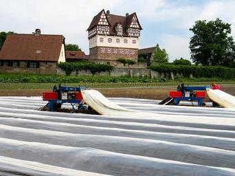 Keywords: asparagus vegetables asparagus time harvest asparagus field food eat agriculture bauer farmer staff workers cover plane castle building old field landscape rural arable