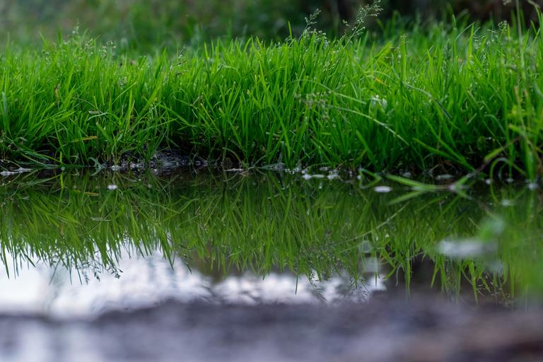 Keywords: asphalt puddle rain wet raining road meadow mirroring