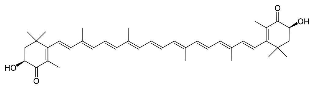 Keywords: Astaxanthin.svg Astaxanthin Own 2008-04-30 Yikrazuul Secondary alcohols Dyes Cyclic ketones Nutrients Alkene derivatives Pigments Xanthophylls Terpenes Cycloalkene derivatives