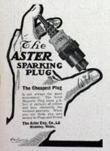 | Keywords: Aster-Wembley Spark plug - 1910 Advert.jpg en 1910 advertisement for Aster Wembley spark plug designed for publication in consumer press and trade journals throughout the UK and worldwide 2012-07-25 Aster-Wembley Spark plug - 1910 Advert that was designed to be published in the UK France USA and worldwide Internet source of the scanned image is www gracesguide co uk/Aster_Engineering_Co unknowable internal staff of Aster in 1900s over 100 years ago Pd-old PD-US Spark plugs l'Aster engines |