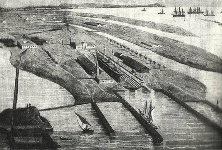 Keywords: AstilleroTrocadero.jpg es Dibujo de los diques de carena de Trocadero http //ernesto-caldelas blogspot com/2010/11/estuvo-colon-en-puerto-real html Ernesto Caldelas PD-old Puerto Real History of Andalusia