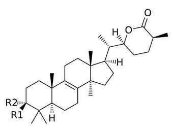 Keywords: Astrahygrols.svg Chemical structure of astrahygrols <br>Astrahygrol R1 OH R2 H<br>3-epi-Astrahygrol R1 H R2 OH<br>Astrahygrone R1 R2 O Own 18 44 17 January 2016 UTC Ed Edgar181 Astrahygrols