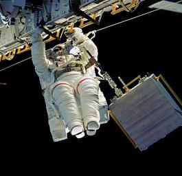 Keywords: astronaut spacewalk iss tools suit pack tether floating international space station job maintenance extravehicular activity