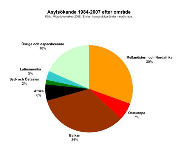 | Keywords: Asylsökande efter område 1984-2007.svg en Asylum seekers to Sweden 1984-2007 by area of origin sv Asylsökande till Sverige 1984-2007 efter ursprungsområde Own Koyos 2009-01-20 Data from Migrationsverket 2009 Demographics of Sweden Sociological charts Immigration in Sweden Refugees |